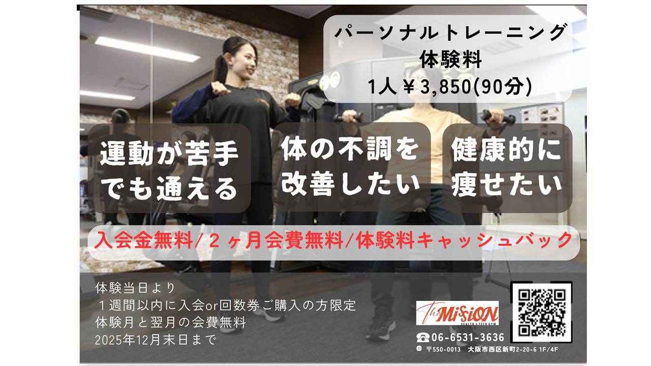 大阪市西区(西大橋,西長堀,新町)の鍼灸整骨院、パーソナルトレーニングジムなら