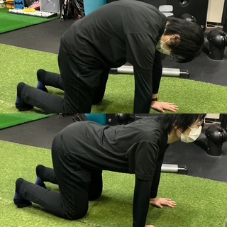 四つん這いになる(手は肩の真下、膝は腰の真下)