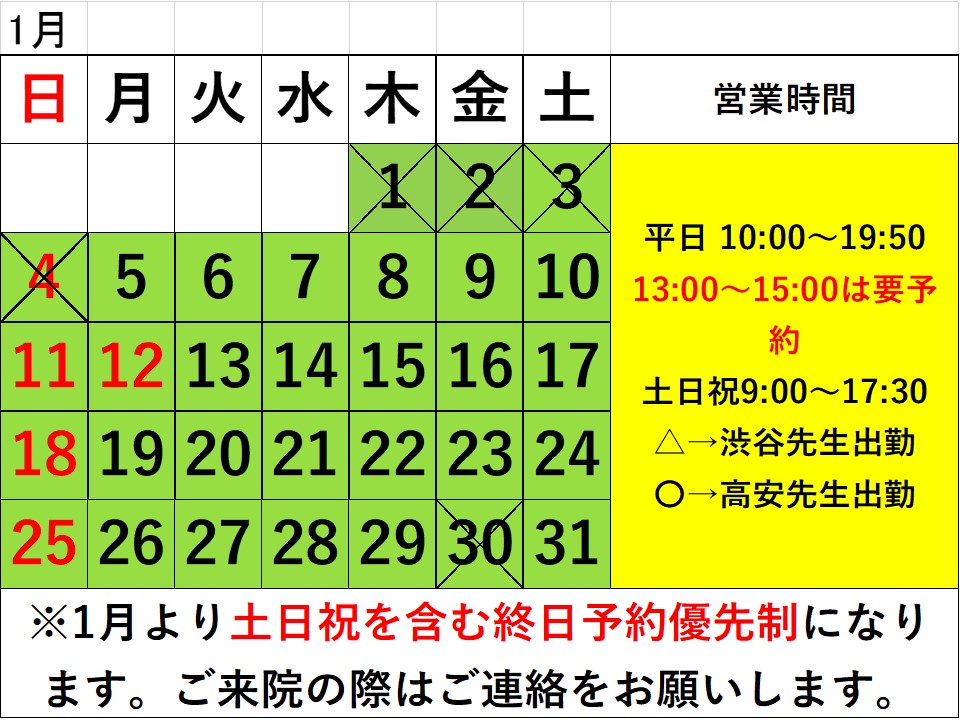 1月の営業案内:TheMissionコンディショニングプラザ・鍼灸整骨院