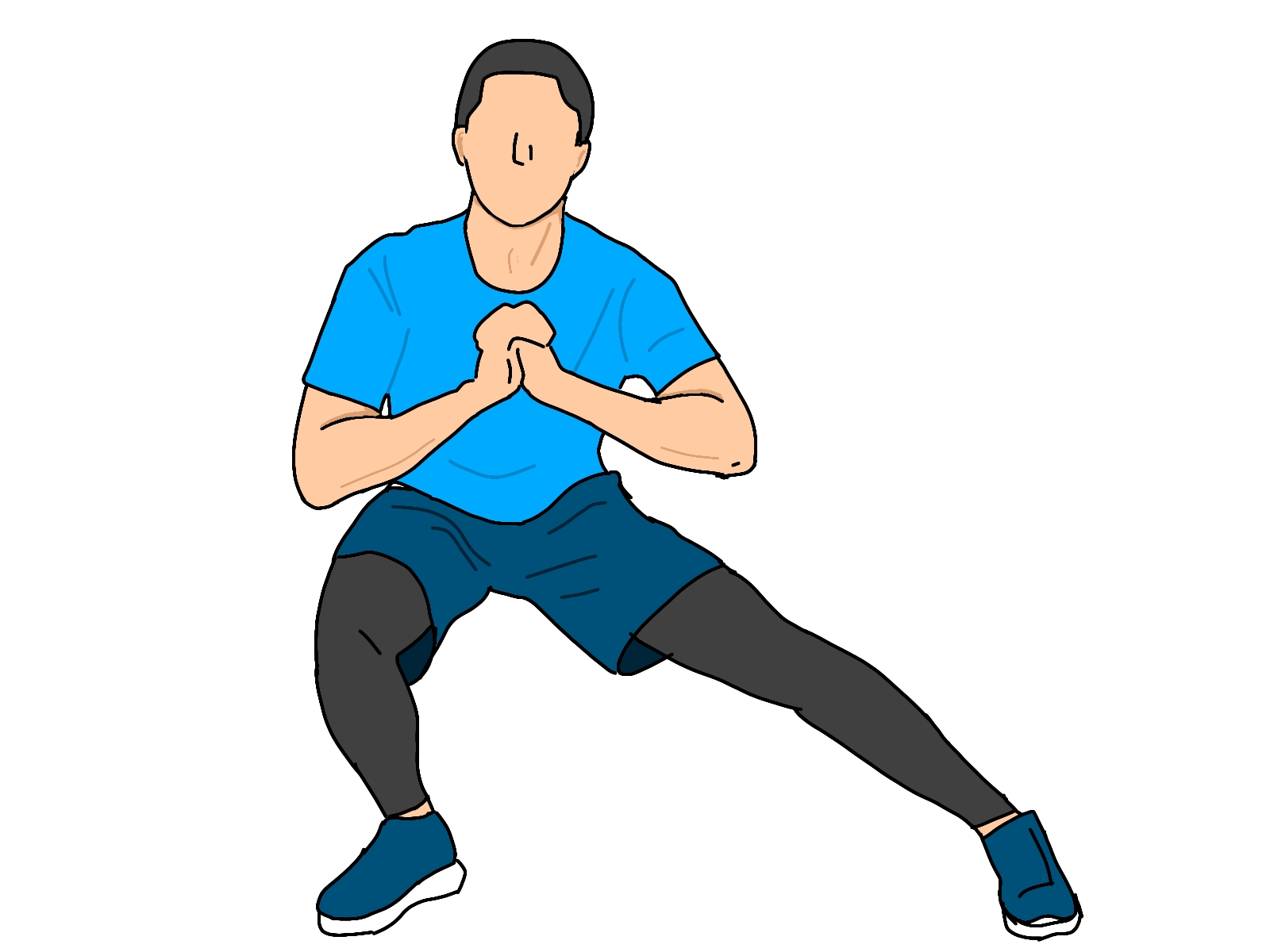 腰幅や肩幅でよくスクワットを行うことはあると思いますが、足幅を広げてスクワットを行うことで内転筋への負荷を上げることができます。