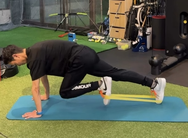 自重トレーニングのマウンテンクライマーにチューブを加えることで、
